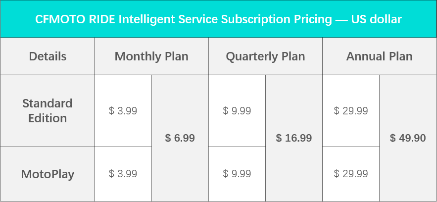 How is the CFMOTO RIDE subscription service charged?