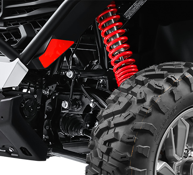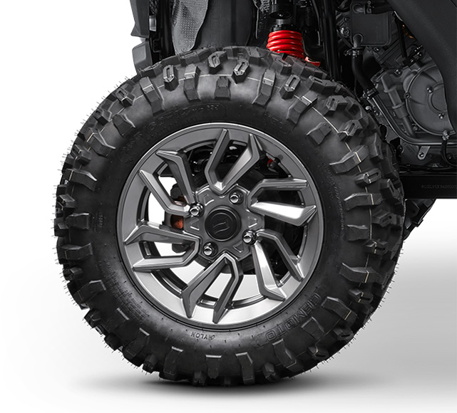 三点式安全带,更舒适更安全;半门设计,带防护功能,安全系数进一步提高;14英寸时尚合金轮辋,26英寸轮胎,强度硬度均上一个新台阶,恶劣地形、未知路况均不在话下。高强度防滚架,时刻提供安全保障,带来全域守护。